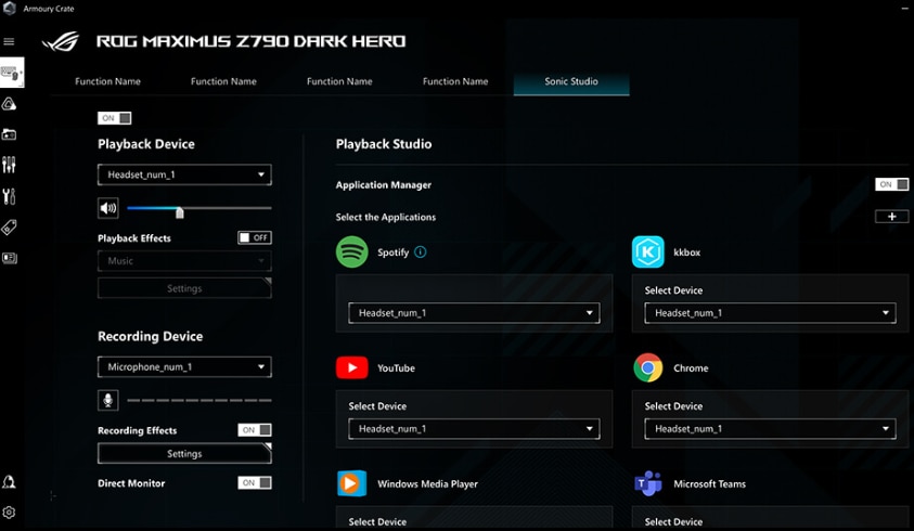 Sonic Studio Sonic Studio suporta surround-ul virtual bazat pe HRTF (functia de transfer legata de cap) pentru casti, creand un peisaj auditiv captivant care va atrage mai adanc in actiune. Interfata intuitiva Sonic Studio ofera, de asemenea, o gama de optiuni de egalizare si presetari cu un singur clic, permitandu-va sa adaptati acustica in functie de preferintele personale sau de caracteristicile castilor dumneavoastra. |