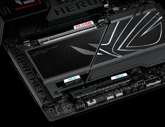 SLOT DE EXPANSIUNE PCIE 5.0 Slotul de expansiune x16 principal ofera PCIe 5.0 cu viteze incredibile de pana la 64 GB/s pentru dispozitivele compatibile, suportand complet placile grafice de ultima generatie. Pentru a suporta greutatea placilor grafice masive, acesta este, de asemenea, protejat cu un suport de fixare SafeSlot care poate fi eliberat cu usurinta, datorita PCIe Slot Q-Release Slim. |