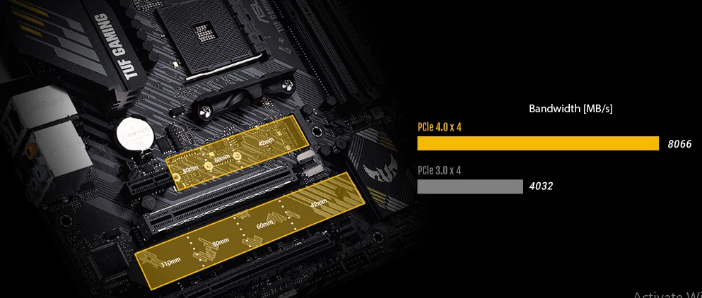 Seria de plăci de bază TUF Gaming B550M suportă sloturi M.2 PCIe 4.0 și oferă suport pentru RAID SSD-urilor NVMe pentru un spor de performanță incredibil. Creează o configurație RAID cu stocare de până la PCIe 4.0 pentru a te bucura de cele mai rapide viteze de transfer de date pe platforma AMD Ryzen.