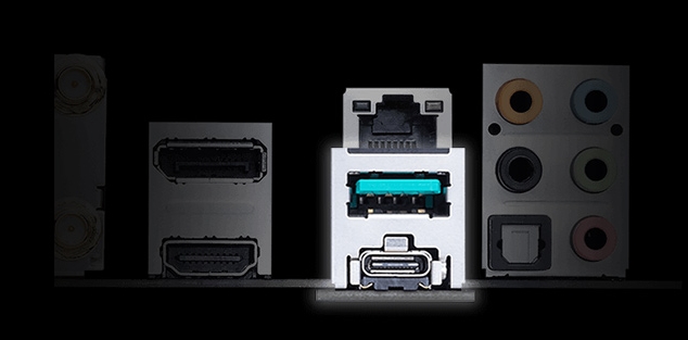 Numeroase porturi USB suportă sistemele high-end cu periferice multiple, având inclusiv doi conectori USB Type-A pentru panoul spate cu conectivitate rapidă USB 3.2 Gen 2, pentru carcasele compatibile.