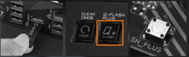 Actualizati cu usurinta BIOS-ul fara a instala procesorul, memoria si placa grafica. Cu GIGABYTE Q-Flash Plus, nu este nevoie sa instalati CPU, memoria si placa grafica si nici sa intrati in meniul BIOS pentru a actualiza BIOS-ul. Trebuie doar sa descarcati si sa salvati un nou fisier BIOS (redenumiti-l in gigabyte.bin) pe unitatea flash USB, apoi apasati butonul dedicat Q-Flash Plus si sunteti gata de plecare!