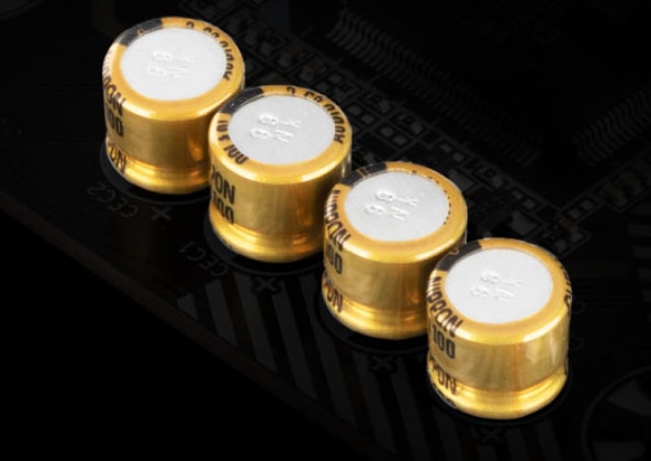 Condensatoare audio High-End Placile de baza GIGABYTE utilizeaza condensatori audio de inalta calitate. Acesti condensatori de inalta calitate ajuta la furnizarea de inalta rezolutie si inalta fidelitate audio pentru a oferi cele mai realiste efecte sonore pentru gameri.