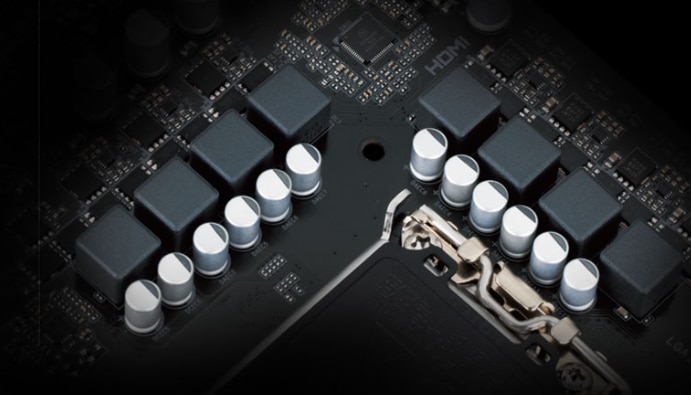 Condensatoare audio High-End Placile de baza GIGABYTE utilizeaza condensatori audio de inalta calitate. Acesti condensatori de inalta calitate ajuta la furnizarea de inalta rezolutie si inalta fidelitate audio pentru a oferi cele mai realiste efecte sonore pentru gameri.