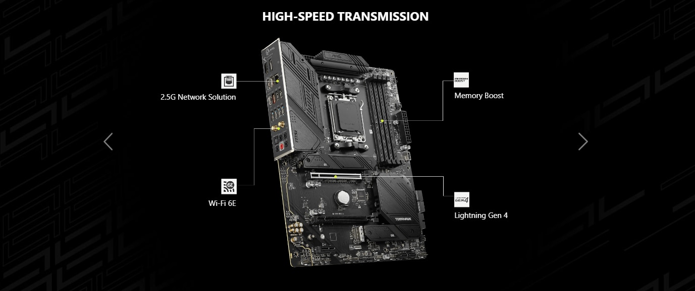 Utilizarea dispozitivelor USB 3.2 nu a fost niciodata mai rapida! Placile de baza din seria MAG B650 ofera o mare varietate de optiuni pentru conectarea si stimularea dispozitivelor USB, oferind viteze USB nemaiintalnite pana acum, de pana la 20Gb/s la conectarea USB Type-C din spate.