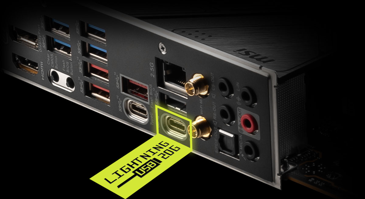 Latime de banda dubla cu LIGHTNING USB 3.2 GEN 2x2 20G 20G Utilizarea dispozitivelor USB 3.2 nu a fost niciodata mai rapida! Placile de baza din seria MAG Z790 ofera o mare varietate de optiuni pentru conectarea si stimularea dispozitivelor USB, oferind viteze USB nemaiintalnite pana acum, de pana la 20Gb/s la conectarea USB Type-C din spate. |