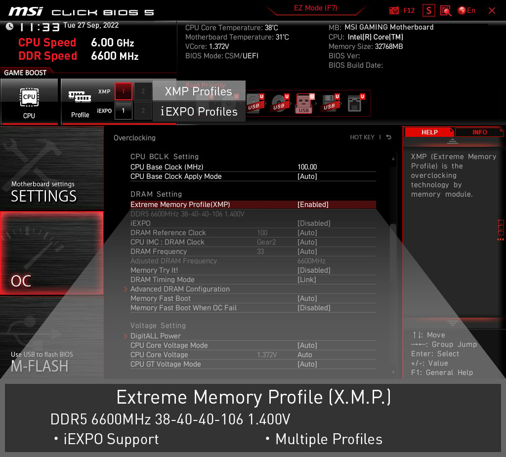 OVERCLOCKING USOR CU PROFIL XMP Profilurile XMP (Extreme Memory Profiles) din MSI BIOS sunt testate si certificate de MSI OC LAB. Este usor de activat cu setari de alimentare automata pentru a obtine cea mai buna viteza si stabilitate a memoriei. |