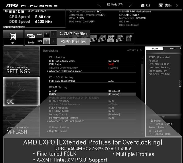 MSI efectueaza teste amanuntite ale memoriei cu cele mai populare marci de memorie in conditii extreme pentru a se asigura ca sistemul dvs. functioneaza stabil indiferent de situatie. Profil EXPO usor de activat cu setari de alimentare automata pentru a obtine cea mai buna viteza si stabilitate a memoriei.