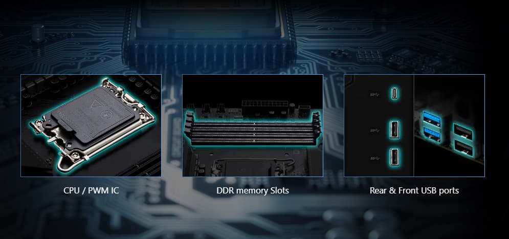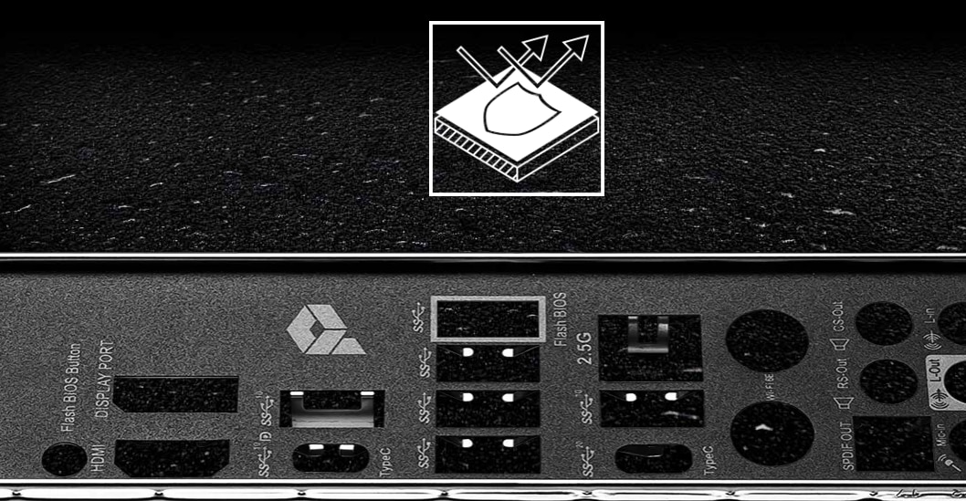 SMT PCIE 5.0 SLOT Slotul PCIE SMT (tehnologie avansata de montare pe suprafata) reduce interferentele si zgomotul electric, suportand pe deplin semnalul PCI-E 5.0. | ![]() |