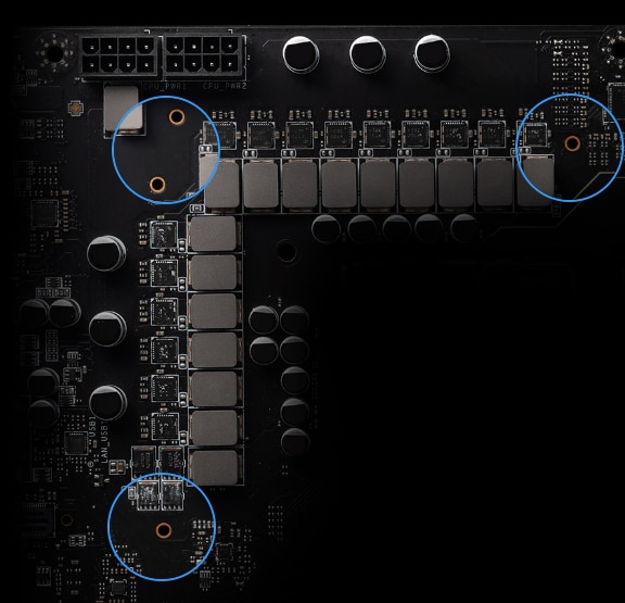 Placutele termice de inalta calitate de 7W/mK pentru MOSFET si placutele termice suplimentare pentru choke asigura o performanta stabila atunci cand toate nucleele functioneaza la viteza mare.