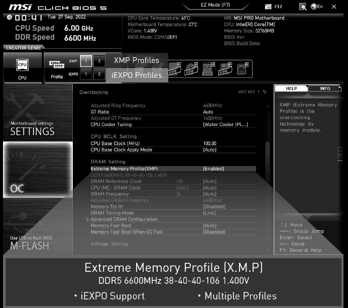 XMP Alegeti dintr-un profil XMP prestabilit si suprascrieti automat memoria DDR compatibila.