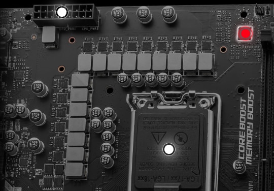 DESIGN DE PUTERE 14+1+1 Dezlantuiti si sustineti performanta maxima cu un VRM cu un design VRM cu un total de 14 + 1 + 1 + 1 putere. Combinand conectori de alimentare dublisi tehnologia exclusiva Core Boost, Z790 GAMING PLUS WIFI este pregatit pentru provocarea procesoarelor high-end. | ![]() |