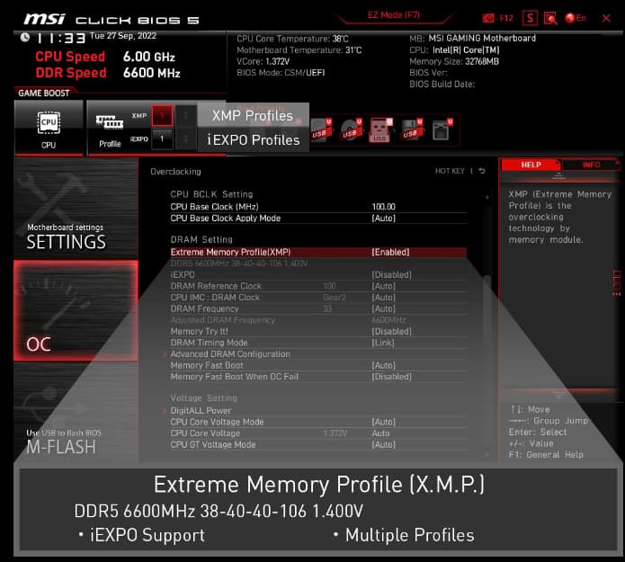 XMP Alegeti dintr-un profil XMP prestabilit si suprascrieti automat memoria DDR compatibila.