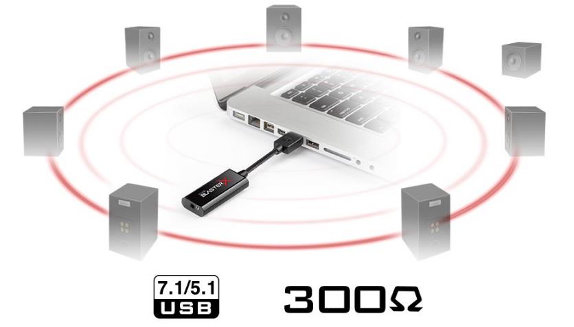 Placa de sunet sunet BlasterX G1 accepta casti cu o impedanta de 300 Ω.
