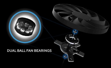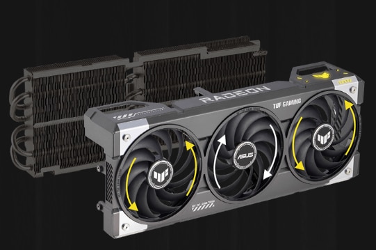 Acest design avansat de racire dispune de tehnica de fabricatie exclusiva ASUS MaxContact, de un pad termic GPU cu schimbare de faza si de ventilatoare Axial-tech eficiente, contribuind la asigurarea unei performante termice premium, a unui flux de aer optimizat si a unei functionari silentioase, toate in cadrul unui exoschelet metalic robust si ventilat.