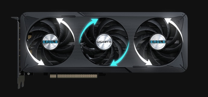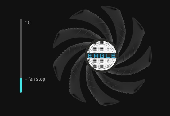 VENTILATOR ACTIV 3D Ventilatorul activ 3D asigura o racire semi-pasiva, iar ventilatoarele vor ramane oprite atunci cand GPU-ul se afla intr-un joc cu sarcina redusa sau cu consum redus de energie. |