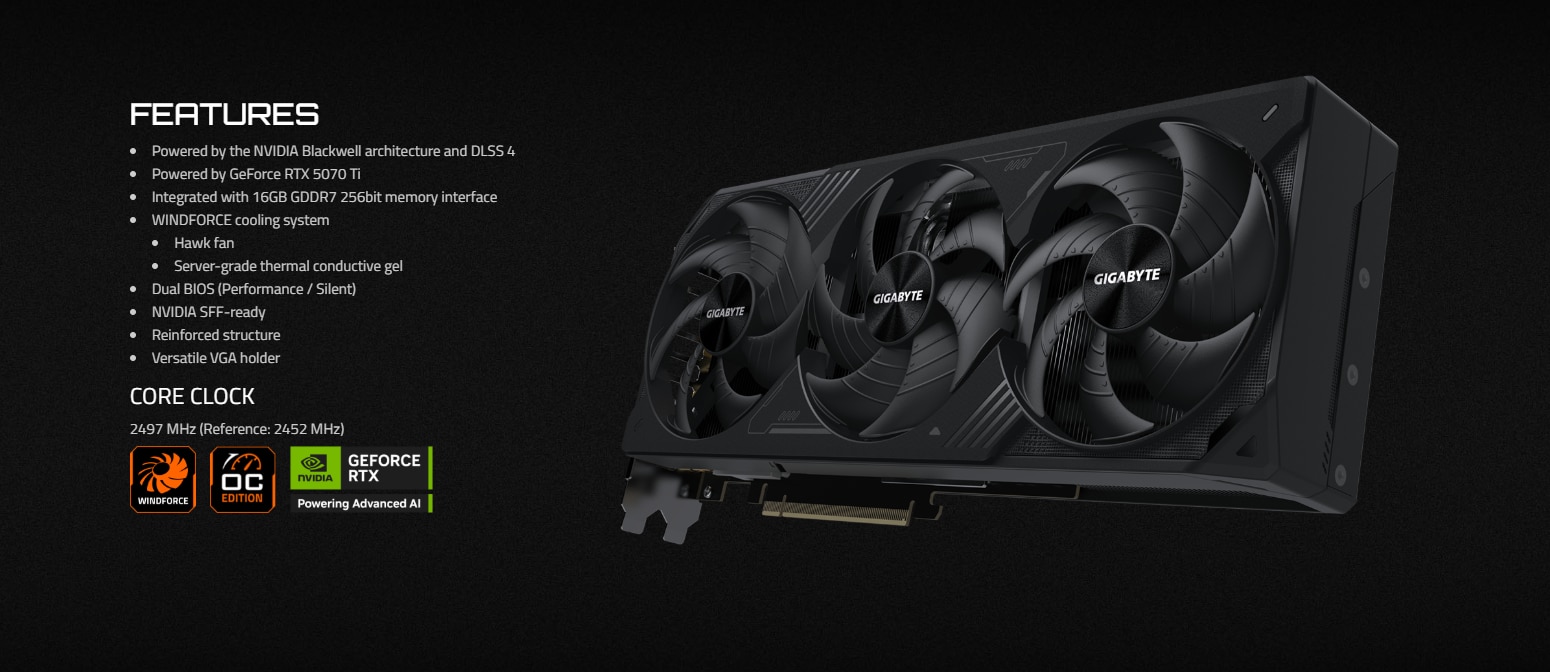 Descrierea produsului Placa video GIGABYTE GeForce RTX 5070 Ti Windforce OC SFF 16GB GDDR7 256-bit DLSS 4.0