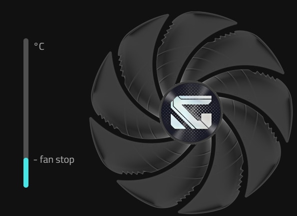 VENTILATOR ACTIV 3D Ventilatorul activ 3D asigura o racire semi-pasiva, iar ventilatoarele vor ramane oprite atunci cand GPU-ul se afla intr-un joc cu sarcina redusa sau cu consum redus de energie. |
