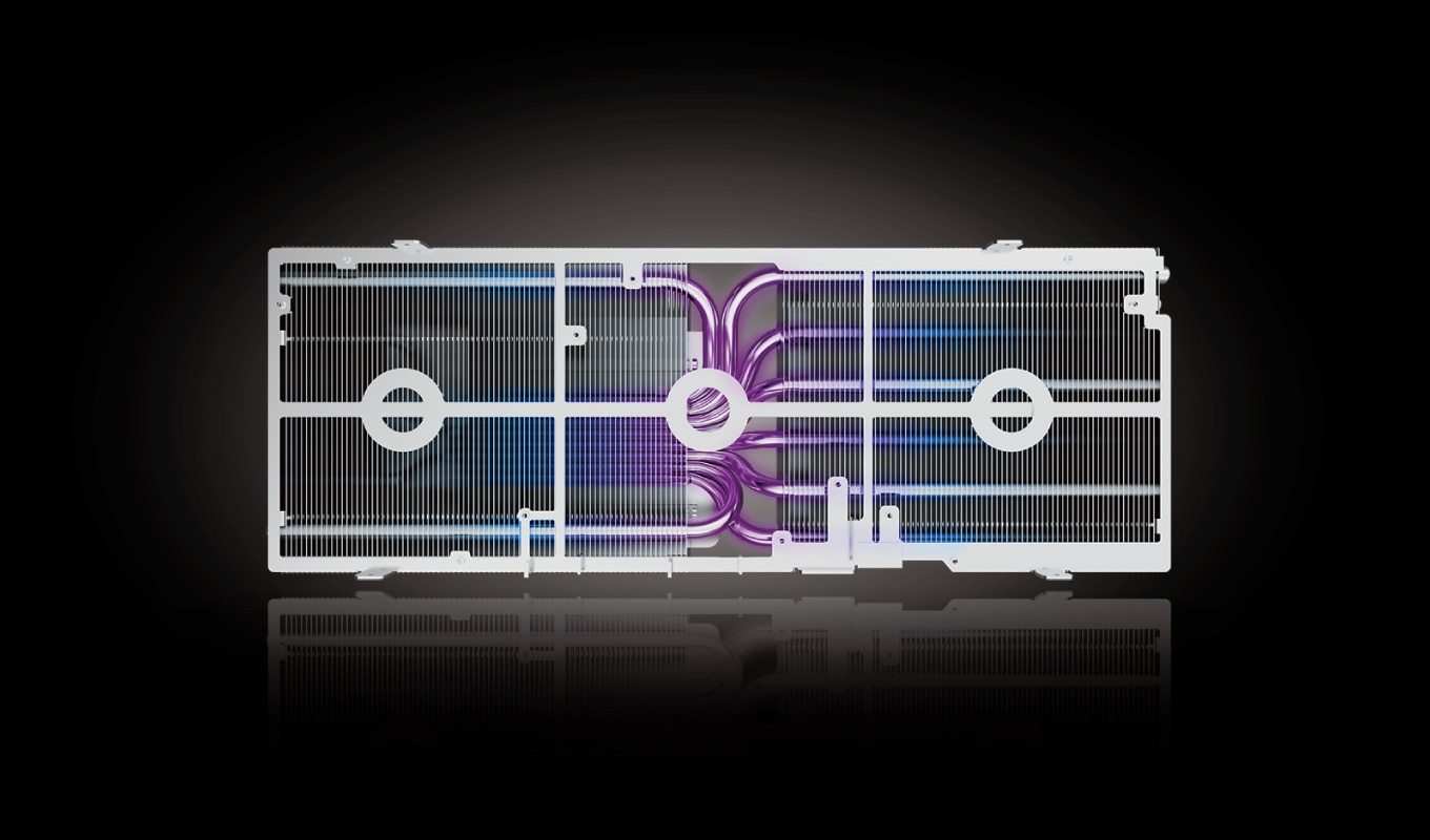 Un set de 8 x 6φ heatpipes din cupru placat cu nichel se aliniaza indeaproape deasupra PCB-ului pentru a transfera mai rapid si mai eficient caldura de la GPU si VRAM la reteaua de racire.