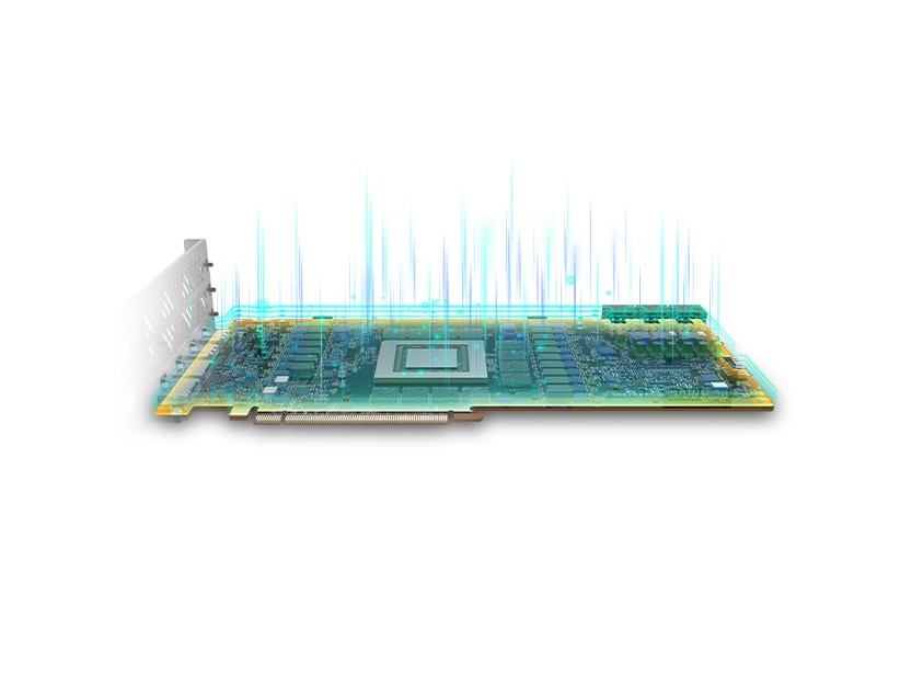 GPU-ul este montat pe un PCB de inalta densitate cu 14 straturi de cupru de 2 oz si TG ridicat, pentru a se potrivi cu viteza rapida, curentul ridicat si cerintele de putere crescute ale GPU-ului si ale memoriei, pentru a garanta o stabilitate ridicata a PCB-ului in timpul functionarii.