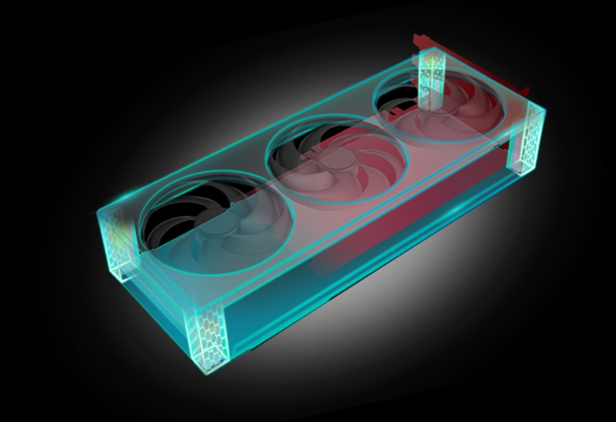 Modul de racire integrata Racirea integrata este o solutie avansata de management termic proiectata pentru a asigura disiparea eficienta a caldurii in toate componentele critice ale unei placi grafice. Acest design inovator asigura contactul direct cu GPU-ul, modulele de memorie si VRM-urile, oferind o reglare termica uniforma. Prin abordarea tuturor surselor majore de caldura, modulul de racire integrat ajuta la mentinerea unor temperaturi de functionare stabile, imbunatatind performanta si fiabilitatea generala a sistemului. Ideal pentru sarcini de lucru solicitante, cum ar fi jocurile, crearea de continut si overclocking, acesta asigura o eficienta termica optima in conditii de utilizare sustinuta.