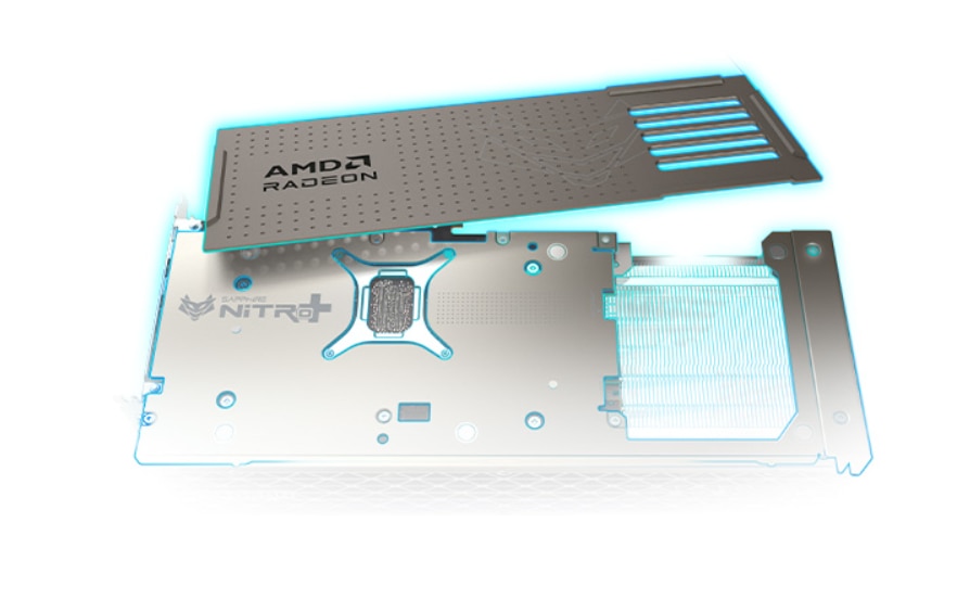 Cadru din otel laminat la rece Experimentati un cadru superior si frumos realizat pe placa grafica NITRO+ AMD Radeon™ RX 9070 XT cu un cadru din otel laminat la rece care fortifica structura si durabilitatea carcasei, in timp ce inconjoara partile laterale ale PCB-ului pentru o invelis puternic alaturi de placa din spate complet metalica. |