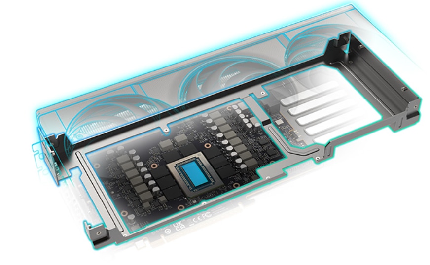 FrameDefense Designul mecanic al placii grafice prezinta un cadru robust, de tip cutie, care asigura o calitate exceptionala a constructiei si durabilitate. Aceasta constructie solida ofera o carcasa de protectie pentru toate componentele interne, reducand riscul de deteriorare in timpul manipularii sau instalarii. Acest cadru rigid ofera un plus de stabilitate si rezistenta, facandu-l extrem de rezistent la impacturile accidentale sau la presiune, asigurandu-se ca componentele delicate, cum ar fi GPU-ul, memoria si VRM-urile, raman in siguranta. Cu acest design, utilizatorii pot manipula cu incredere cardul, fara sa isi faca griji ca ii vor compromite integritatea sau performanta. |