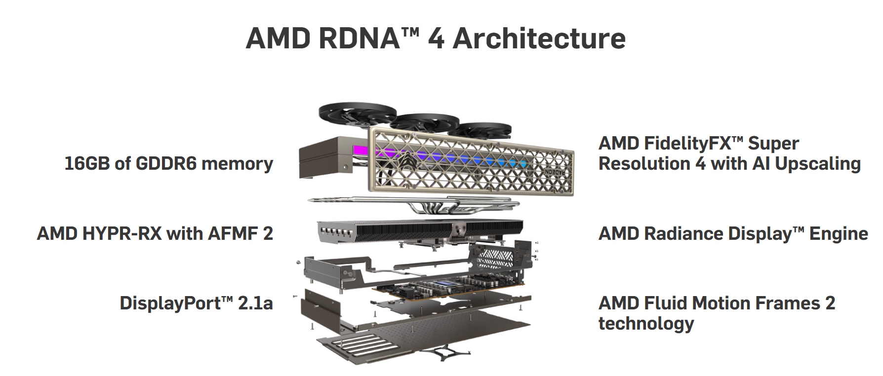 Arhitectura AMD RDNA™ 4 Construita pe arhitectura revolutionara AMD RDNA™ 4 cu tehnologie chiplet, grafica AMD Radeon™ RX 9070 Series ofera performante, efecte vizuale si eficienta de ultima generatie. |
