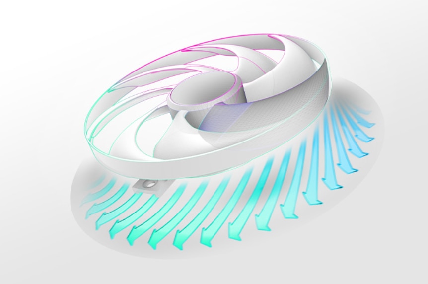 Designul de racire Free Flow este adaptat pentru sistemele cu ventilatoare axiale, oferind un modul avansat de aripioare pentru radiator care optimizeaza caile fluxului de aer. Prin reducerea turbulentelor si canalizarea eficienta a aerului, acesta maximizeaza disiparea caldurii, asigurand performante constante chiar si in conditii de sarcini termice mari.