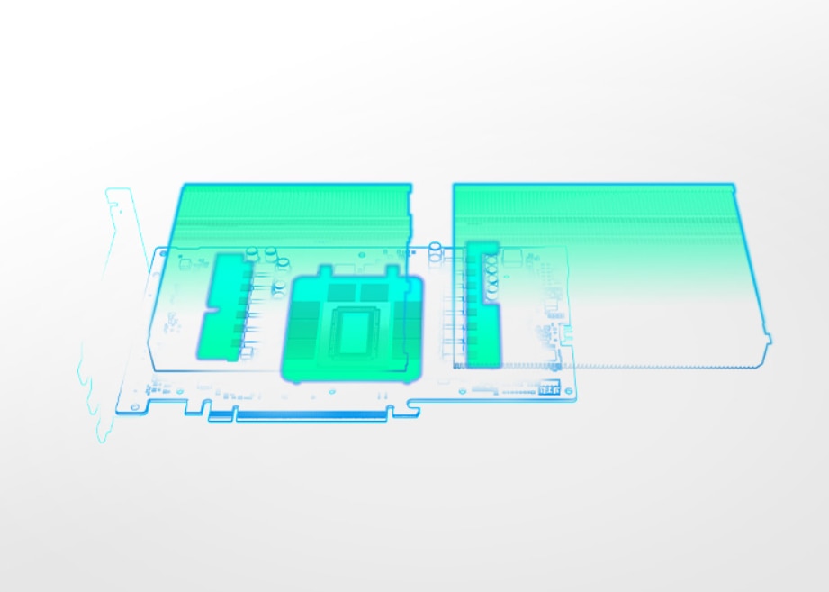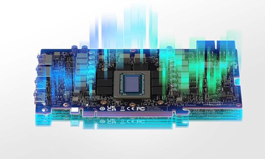 GPU-ul este montat pe un PCB de inalta densitate cu 12 straturi de cupru 2oz si TG ridicat pentru a se potrivi vitezei rapide, curentului ridicat si cerintelor de putere crescute ale GPU-ului si memoriei pentru a garanta o stabilitate ridicata a PCB-ului in timpul functionarii.