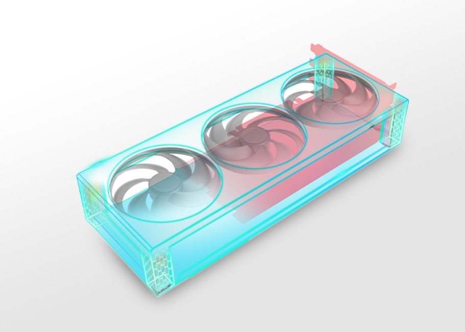 GPU-ul este montat pe PCB-ul de inalta densitate cu 12 straturi de cupru 2oz si TG ridicat pentru a se potrivi cu viteza rapida, curentul ridicat si cerinta crescuta de putere a GPU-ului si a memoriei pentru a garanta o stabilitate ridicata a PCB-ului dSincronizarea controlului ARGB extern
