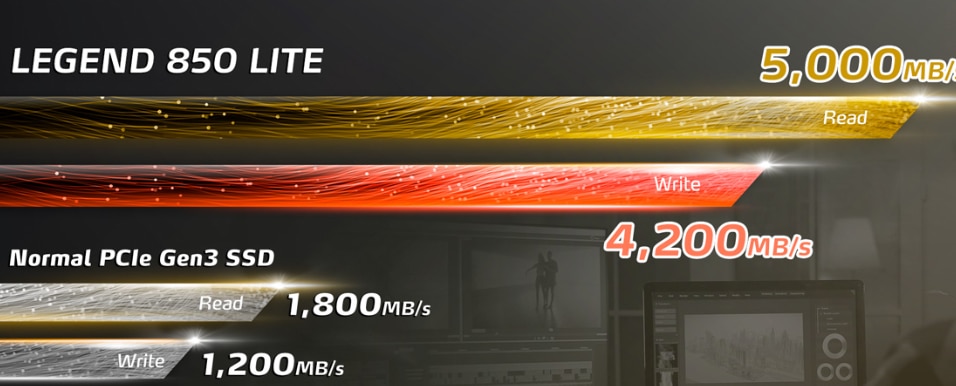 LEGEND 850 LITE suporta cea mai recenta interfata PCIe Gen4 x4, care indeplineste standardul NVMe 1.4. Acesta ofera performante excelente de citire si scriere, conectivitate extinsa a dispozitivelor si suport pentru cele mai recente platforme Intel si AMD. Fie pe un PC desktop sau notebook, va progreseaza creativitatea.