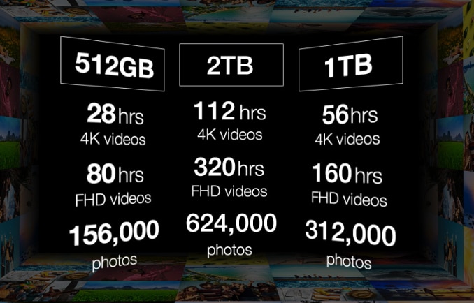 Tot spatiul de care aveti nevoie Dispozitivul dvs. de stocare are suficient spatiu? UE800 are! Are suficient pentru videoclipurile dvs. 4K si nu numai, cu o capacitate de pana la 2TB. Nu va mai trebui sa va faceti griji cu privire la capacitate atunci cand arhivati si editati videoclipuri si fotografii. |