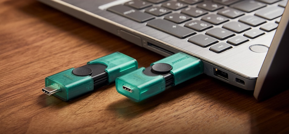 Kingston® DataTraveler® Duo dispune de conectori USB dubli care functioneaza atat cu porturi USB tip A, cat si cu porturi USB tip C®, pentru compatibilitate maxima. Designul inovator cu capac dublu mobil confera unitatii un aspect elegant si practic, fara riscul de a pierde capacul. Cu capacitati de pana la 256 GB, puteti accesa si transfera cu usurinta documente, fotografii, videoclipuri, muzica si multe altele intre dispozitivele USB-A si USB-C cu DT Duo.
