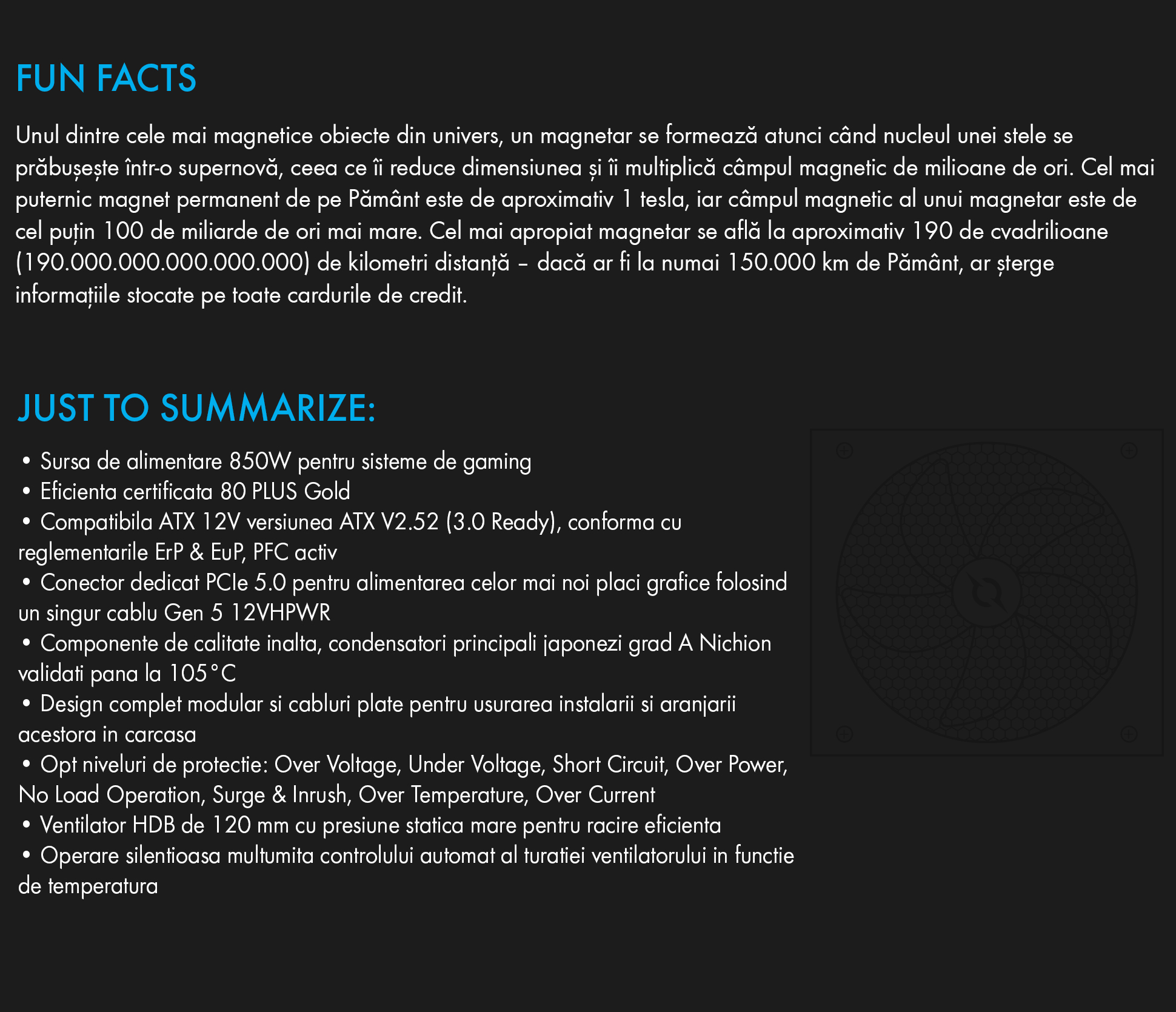 Descrierea produsului Sursa AQIRYS Magnetar, 80+ Gold, 850W