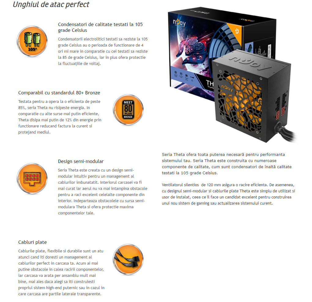 Descrierea produsului Sursa nJoy Theta 650, 650W, Semi Modulara, 80+ Bronze