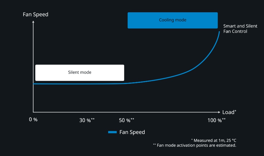 Caracteristica circuitului termic inteligent este conceputa pentru a gasi echilibrul optim intre necesitatea de a raci componentele si nevoia de a rula sursa de alimentare in modul cel mai silentios posibil.