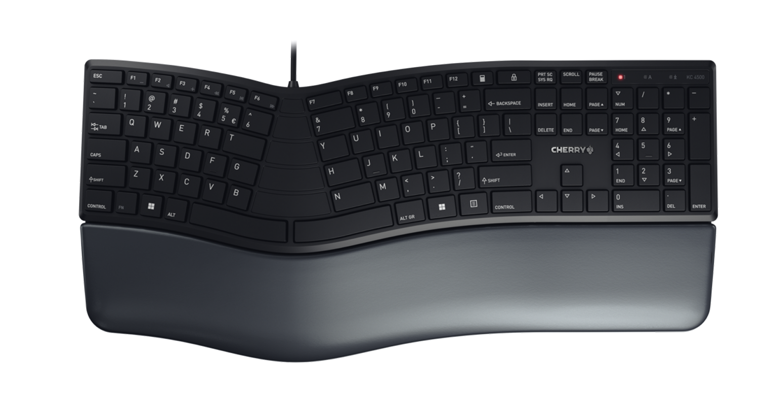 Tastatura ergonomică CHERRY KC 4500 ERGO poate reduce sau elimina tensiunea umărului sau alte simptome neplăcute atunci când lucrați la computer. Datorită designului său special, mâinile și brațele îți asumă o poziție naturală, ameliorând stresul de pe umeri. În plus, suportul pentru mâini moale permite mâinilor să se odihnească confortabil și previne punctele de presiune.
