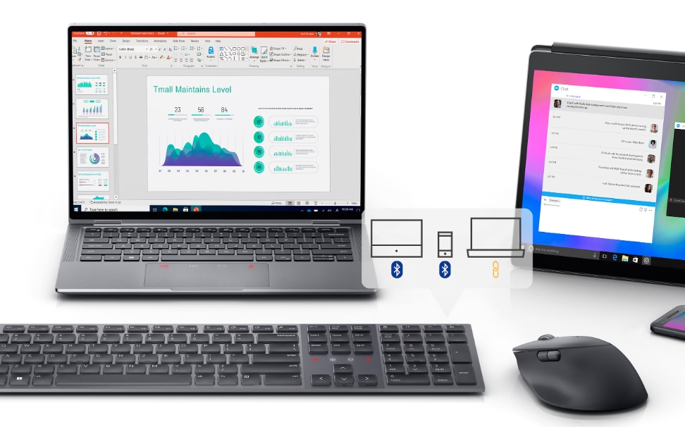 Conexiune perfecta si sigura Modul dual de conectivitate RF 2,4 GHz si Bluetooth® 5.1 va permite sa va conectati si sa comutati fara efort cu pana la 3 dispozitive (doua conexiuni prin Bluetooth si o conexiune prin dongle RF). | ![]() |