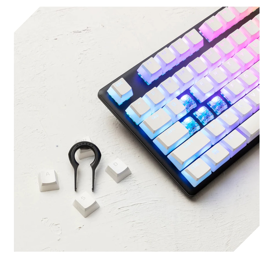 Descrierea produsului Kit butoane tastatura gaming HyperX Pudding White PBT, Layout US, Alb