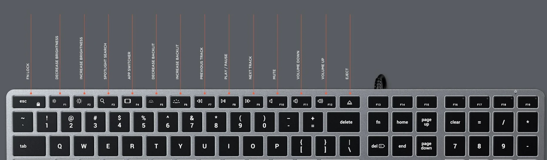 Descrierea produsului Tastatura cu fir Satechi Slim W3 USB-C retroiluminata, US (Gri)