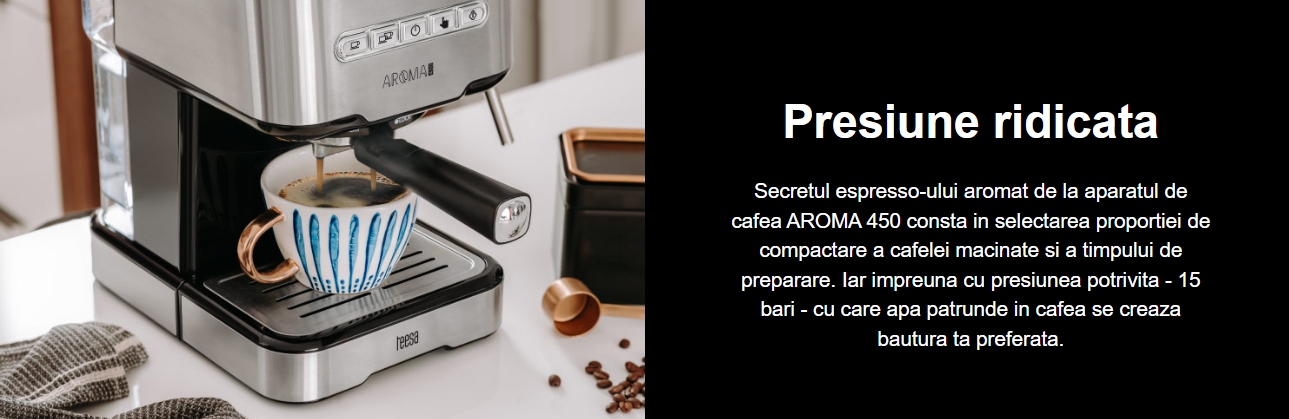 Descrierea produsului Espressor manual Teesa TSA4010, 850 W, 15 Bari, 1.5 L (Negru/Argintiu)