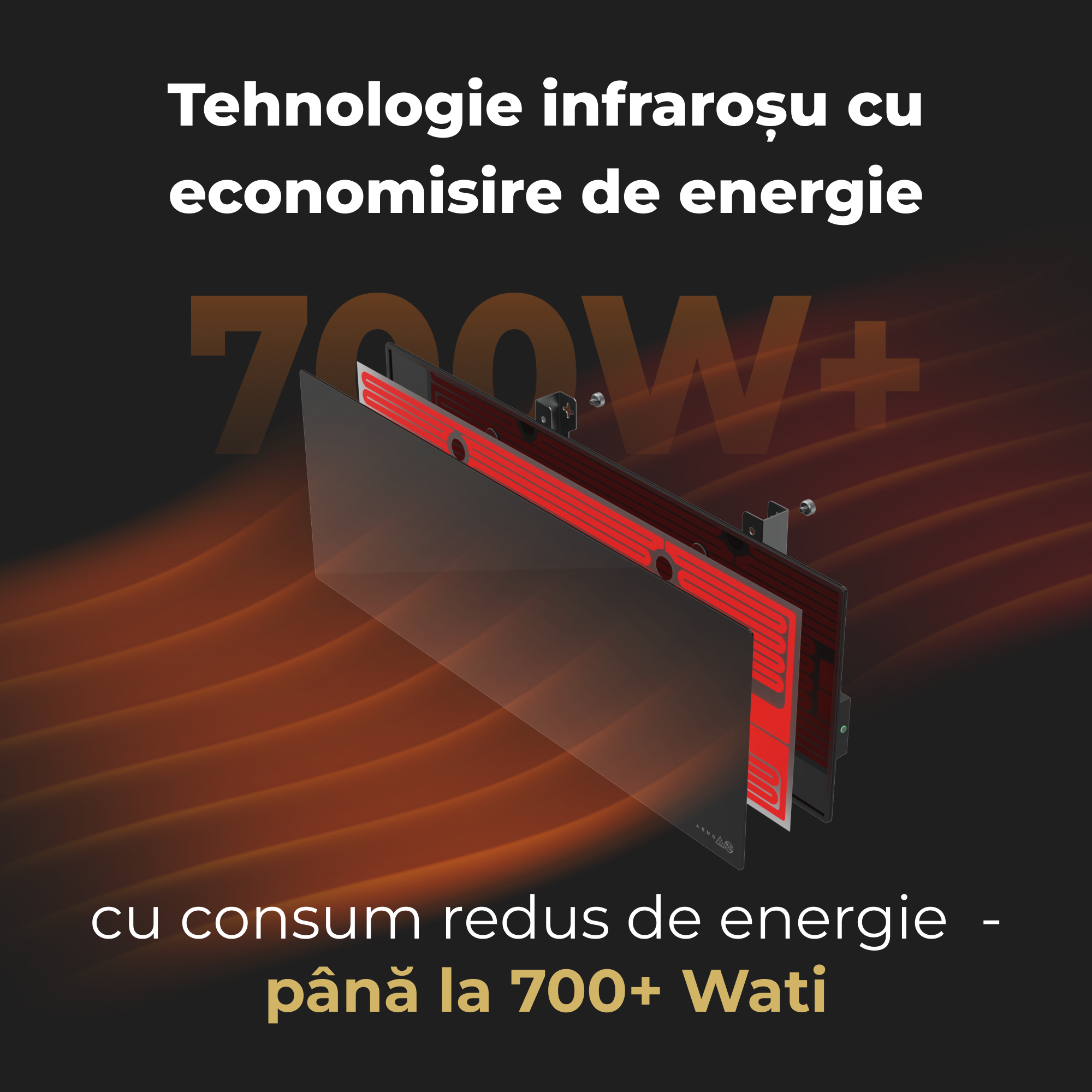 Panou de incalzire cu infrarosu cu consum redus de energie - Pana la 700+ wati. Incalzitorul isi concentreaza energia pe incalzirea obiectelor, nu doar a aerului din jur, ceea ce va face sa te simti incalzit.