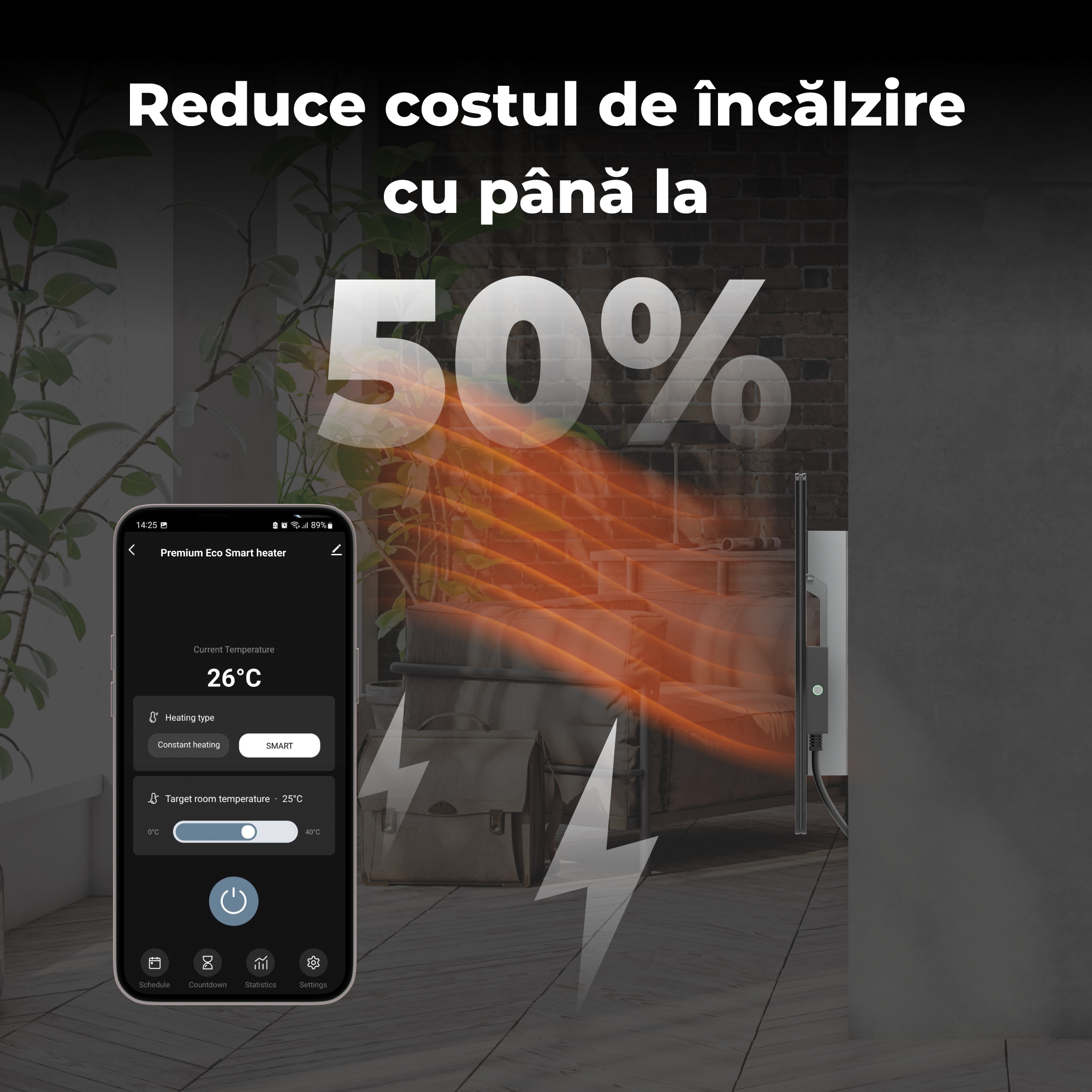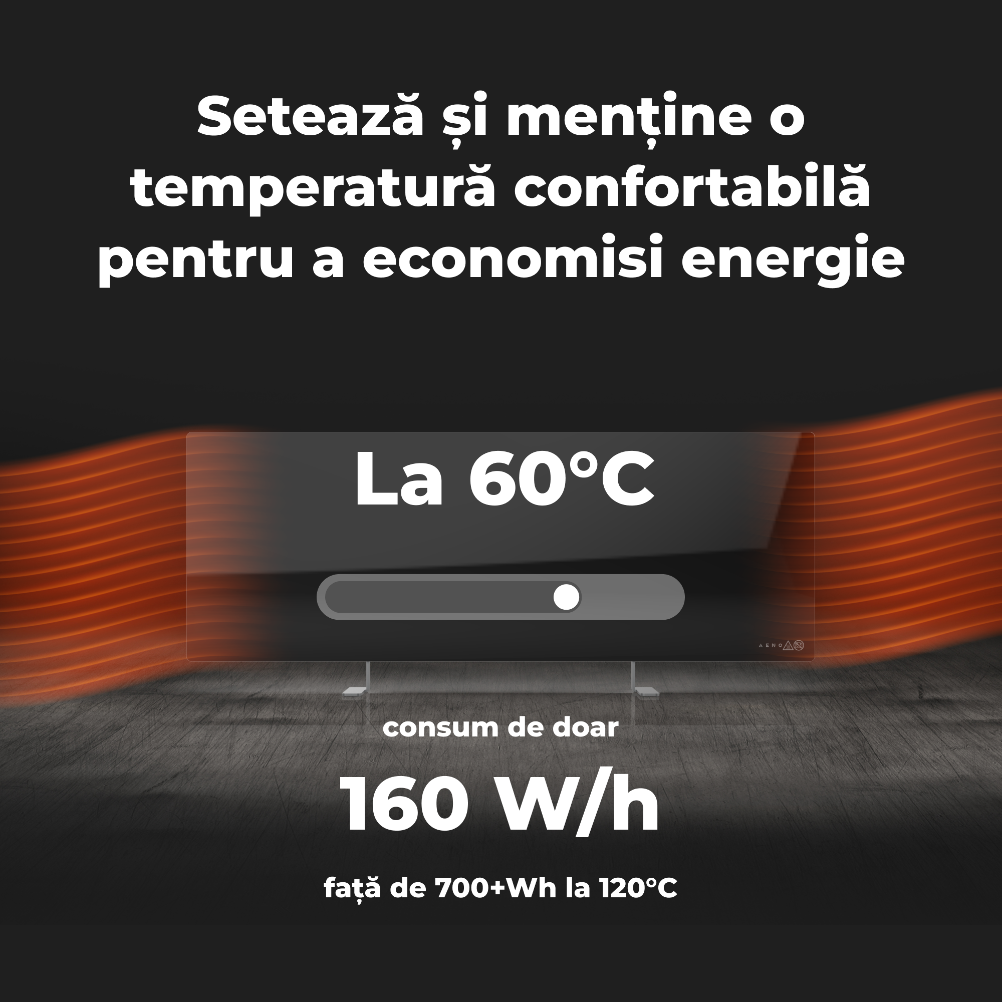 Acest lucru ajuta la evitarea supraincalzirii si a risipei de energie. Atunci cand temperatura panoului de incalzire este setata la 60°C, acesta produce 160 de wati pe ora, ceea ce este suficient pentru a mentine o temperatura confortabila in camera.