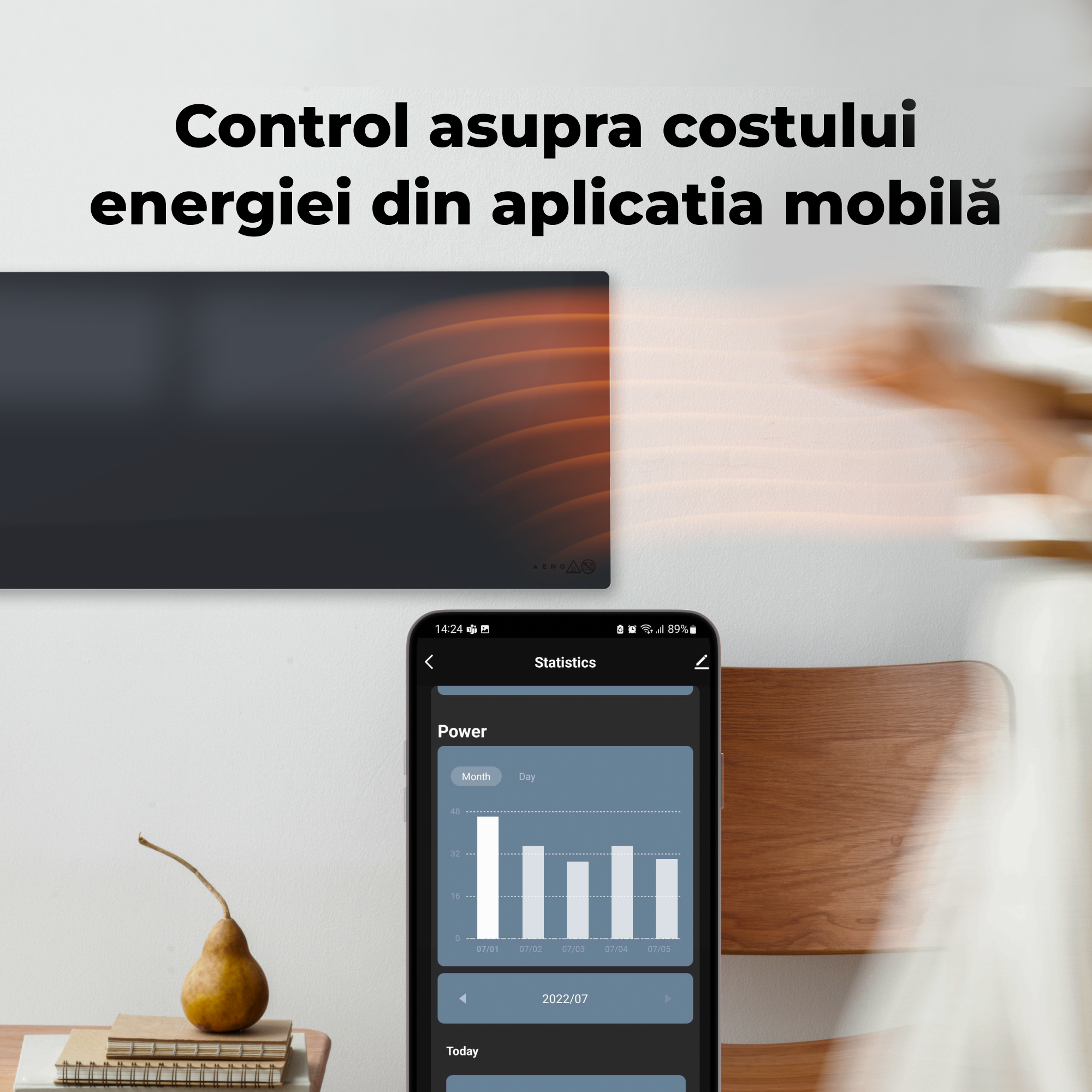 Poti monitoriza consumul de energie si economia realizata, precum si statisticile pentru perioada pe care o alegi. Reglezi caldura casei, a hotelului, a restaurantului si a camerei reducand cheltuielile la minimum.