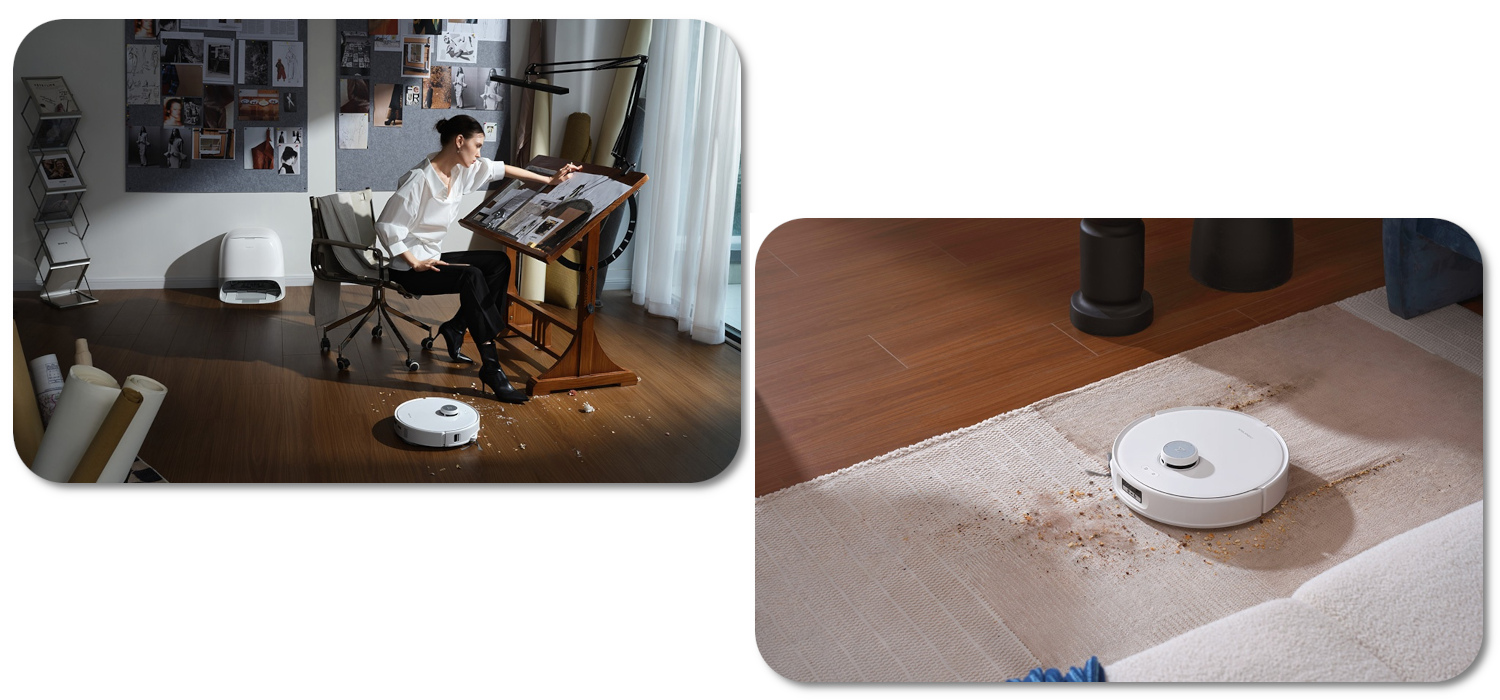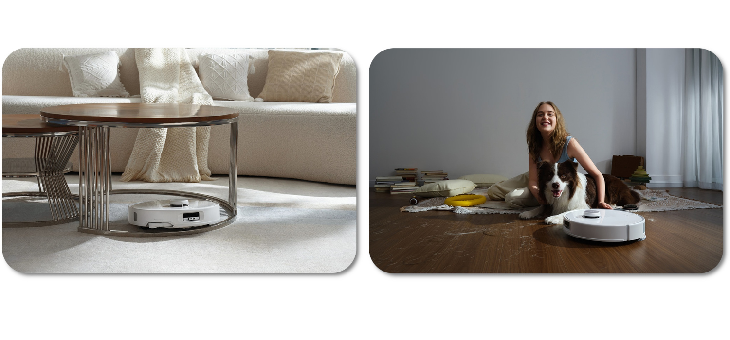 Datorită tehnologiei Dual Anti-Tangle din peria principală DuoDivide și peria laterală FlexiArm, problema părului încurcat este eliminată în mod eficient. Indiferent dacă aveți animale de companie cu păr lung în casă sau aveți covoare dense, robotul poate face față oricărei provocări. Acest lucru vă economisește timp și evită curățarea frecventă a periilor.