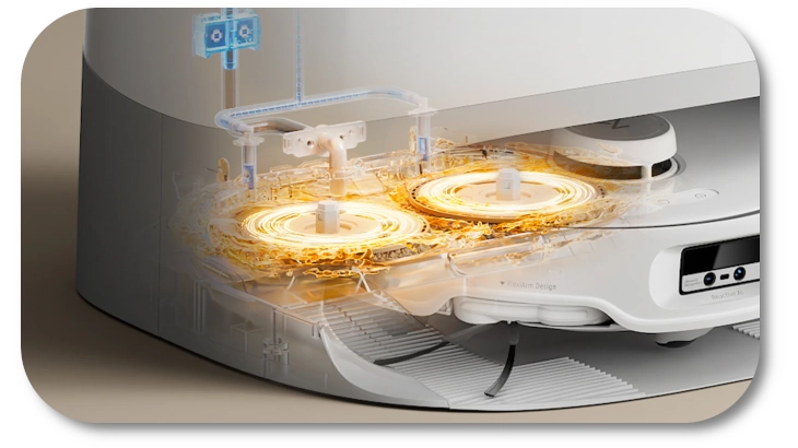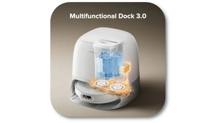 Uitați de întreținerea manuală cu Multifunctional Dock 3.0. Echipat cu un modul de autocurățare, folosește raclete rotative și apă caldă pentru a-și curăța eficient baza. Această soluție garantează curățenie și confort, eliminând necesitatea de a menține singur stația în stare perfectă.
