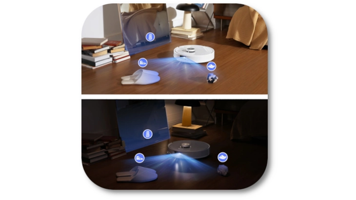 Tehnologia PreciSense LiDAR permite Roborock Qrevo Curv să creeze hărți interioare precise, iar sistemul de recunoaștere a obstacolelor Reactive AI recunoaște și evită până la 62 de tipuri diferite de obstacole. Robotul se mișcă lin atât în spații bine iluminate, cât și în spații întunecate, eliminând riscul de coliziune și reducând nevoia de intervenție.