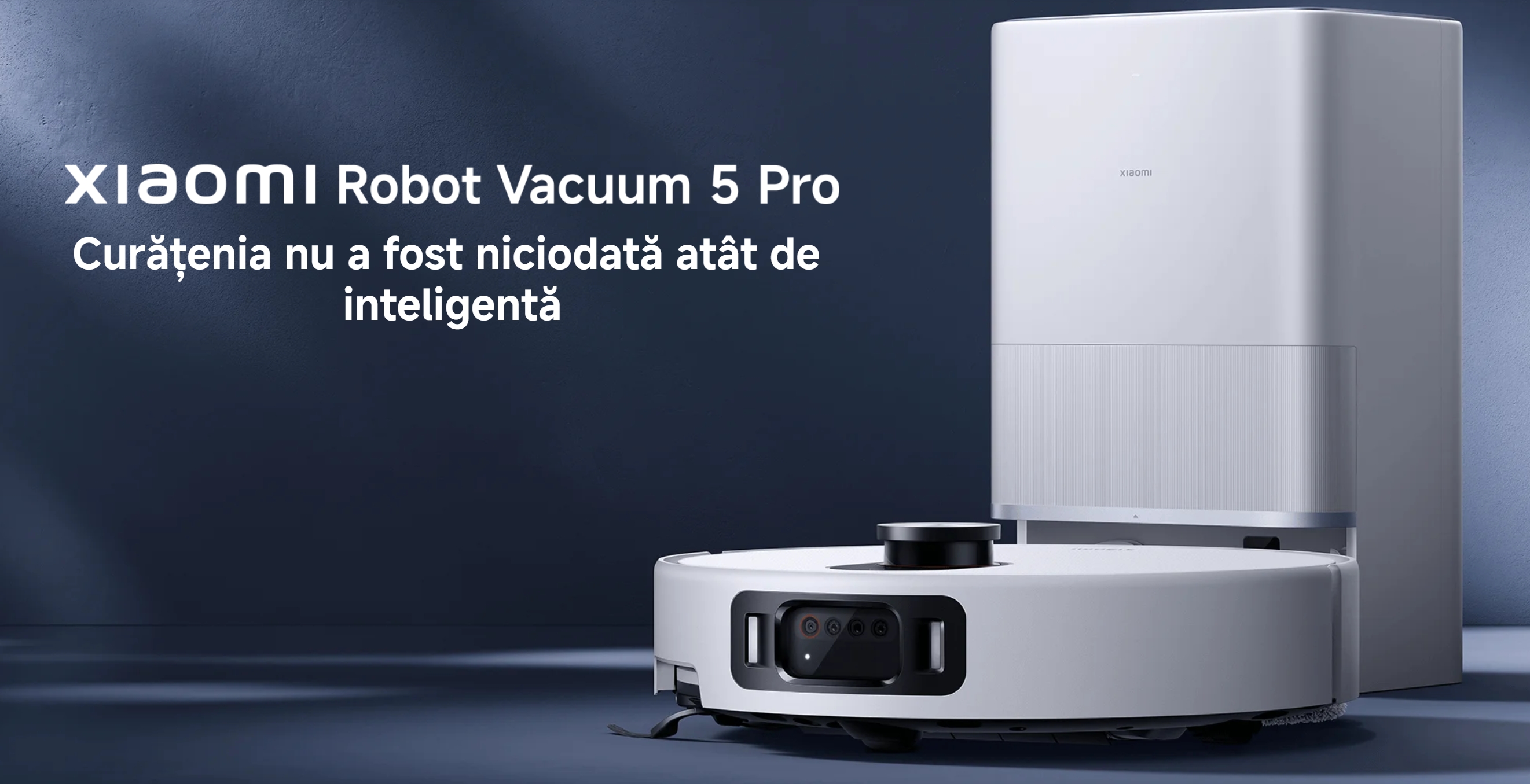 Descrierea produsului Aspirator robot Xiaomi Robot Vacuum 5 Pro BHR07WFEU, 55 W, 20000 Pa, 5200 mAh, Rezervor 0.29l+2.5l Statie, Camera tripla cu AI, Harti 3D (Alb)