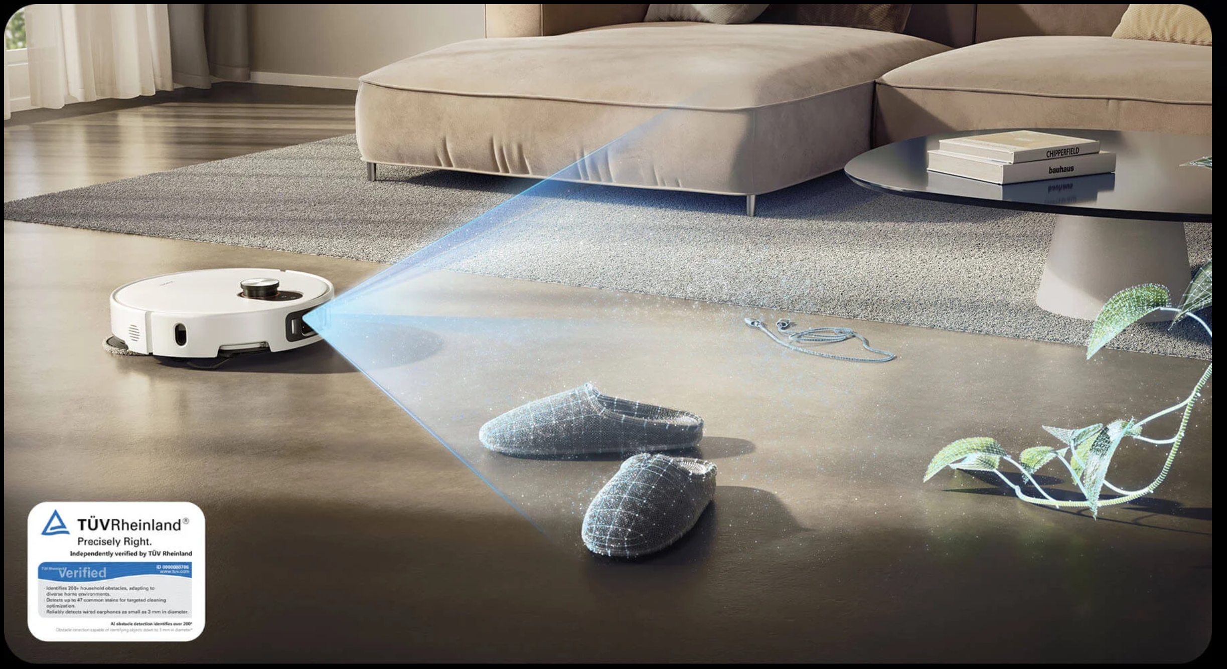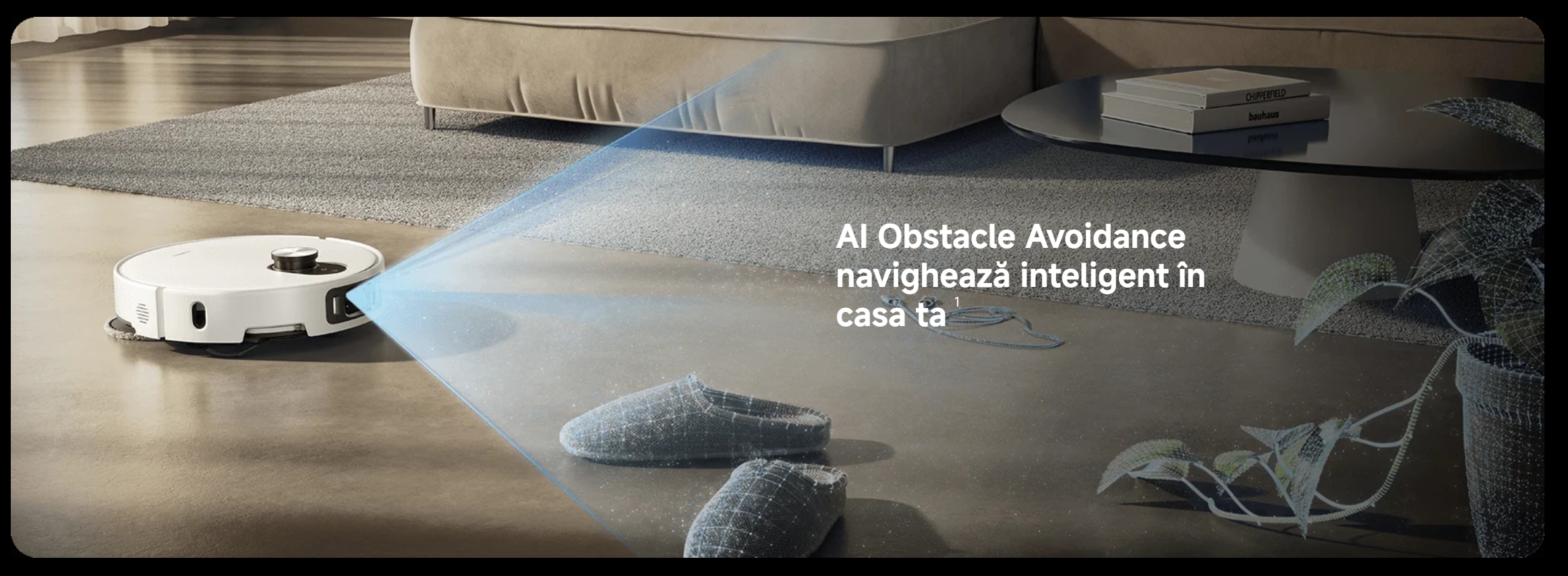 Aspiratorul robot este capabil să identifice peste 200 de obiecte, inclusiv obstacole mici, cum ar fi cabluri USB, șosete și tulpini și frunze drapate. Planifică inteligent rutele de curățare, astfel încât să vă puteți bucura de o curățare flexibilă și fără griji.