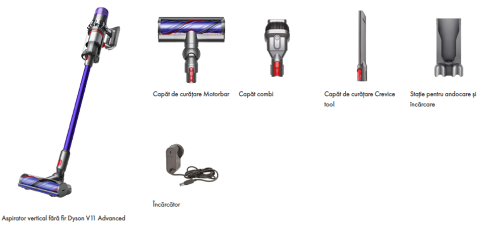 Aspiratorul vertical fara fir Dyson V11 Advanced asigura o putere de aspirare de 200 AW, potrivita pentru curatenie impecabila in intreaga locuinta.